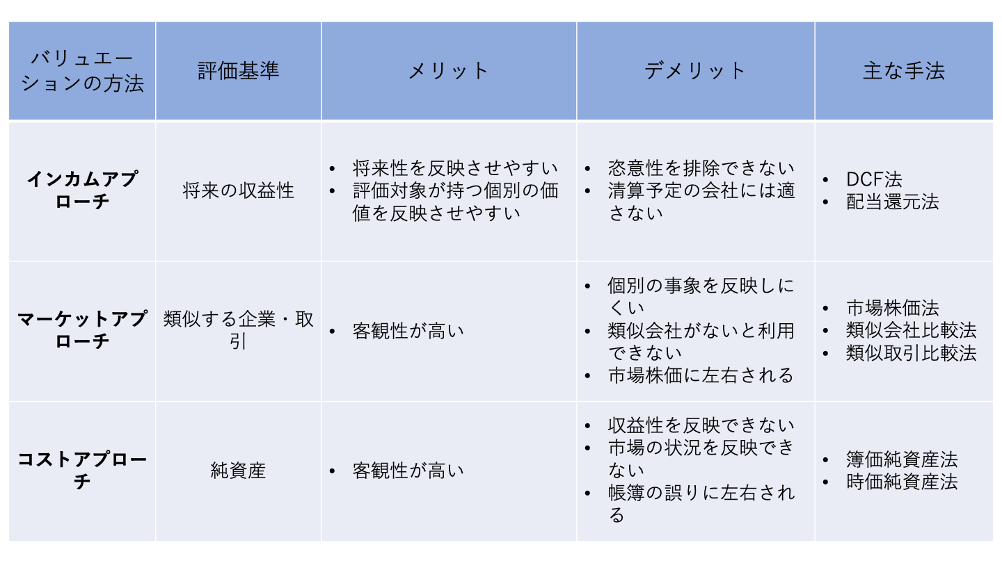 企業価値の算出方法は、大きく以下の3種類に大別されます。