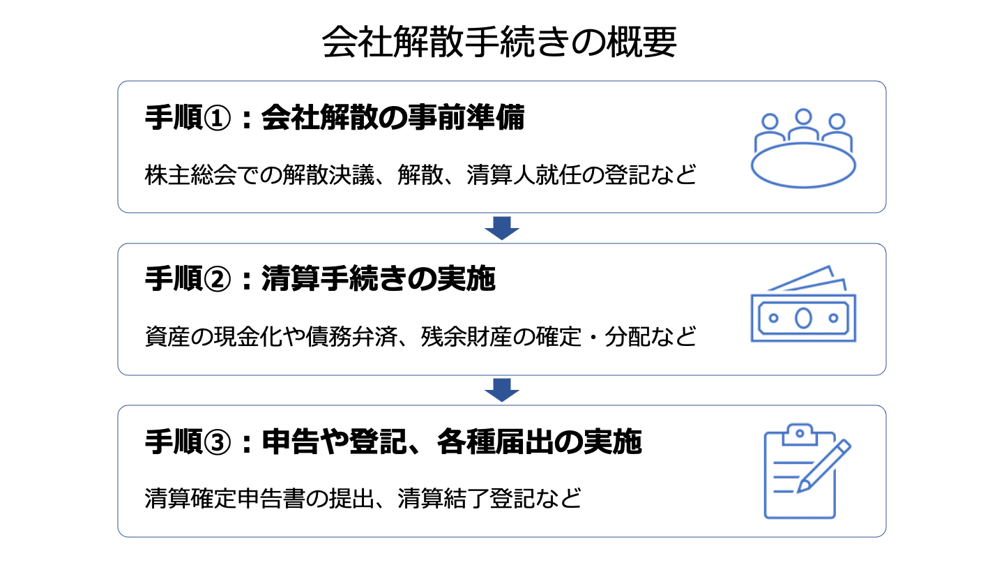 ここでは、会社の解散から清算手続きまでの一連の流れを見ていきます。